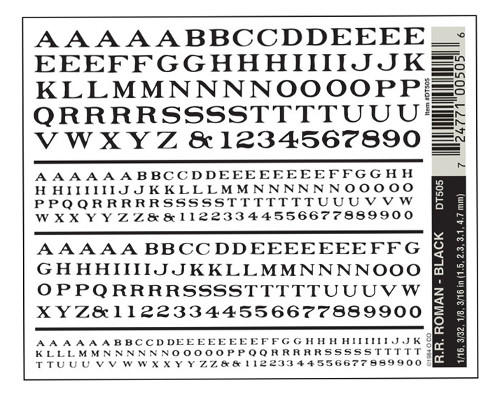 Font size: 1/16", 3/32", 1/8", 3/16" (1.58 mm, 2.38 mm, 3.17 mm, 4.76 mm)