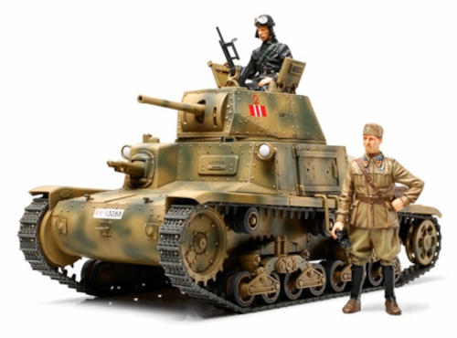 During WWII, the Italian army used the M13/40 as its main tank. It featured a riveted construction and bogey-style wheels on a leaf spring suspension with a 47mm main gun featuring on Italy's first ever hydraulically operated turret. In addition, the M13/40 was powered by a 125hp V8 liquid-cooled diesel engine which produced a top speed of 30km/h. From July 1940 through to 1943, approximately 800 units were produced. They fought mainly alongside the German African Corps at the North African front.