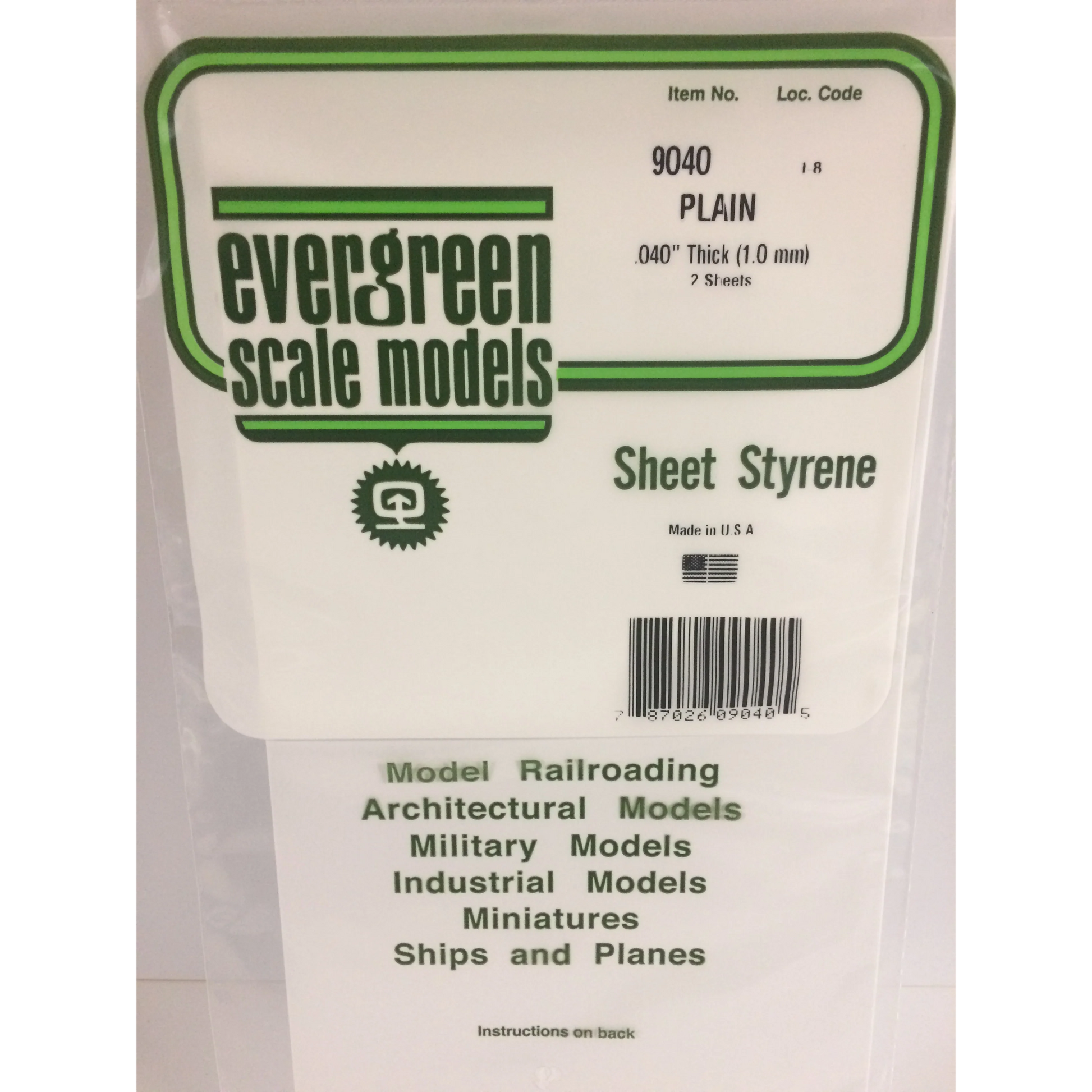 EVERGREEN 8" X 21" 0.040" WHITE POLYSTYRENE PLASTIC SHEET
