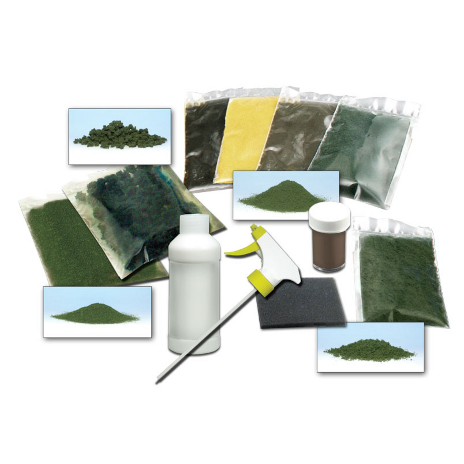 Learn to create beautiful scenery by blending and texturing different types of scenery products. The kit includes material to landscape a 2' x 2' (60.9 cm x 60.9 cm) surface.